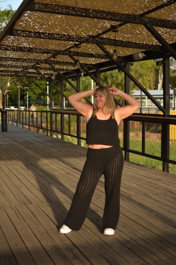 Cada una de ellas ésta tejida de forma vertical, trabajando sobre el largo de la prenda, creciendo a lo ancho y, en dos partes que después se unen con aguja crochet. Las explicaciones serán sobre el top y el short solamente, ya que con la confección del short también podrás hacer el pantalón. Además lo bueno de su estructura es que lo aprenderás a tejer a medida de tu propio cuerpo, y de la misma forma lo vas a poder hacer para los tamaños que quieras. Pepárate para disfrutar de lo lindo que es hacer ésta bellisíma trama. El patrón incluye explicaciones escritas con videos del paso a paso y fotos.