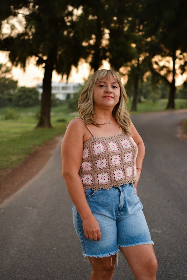 Entonces inspirada en los particulares carnavales es que surgió el Top Carnavalito, hecho con un diseño de granny, que luego uniremos y daremos forma a éste hermoso diseño. También aprenderás a bloquear, y a hacer una deliciosa terminación. Elpatrón se envía en formato PDF imprimible, con fotos, de 14 páginas, con 11 vídeos del paso a paso.